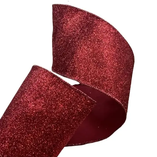 This wired ribbon features fabric in a vibrant red color encrusted with sparkling glitter, adding a touch of glamour to its simple design. Sewn wire edged ribbon allows you to bend and shape your creations to decorate with ease, making it perfect for decorating Christmas trees, wreaths, or gift accenting. Made in true designer quality, and crafted from the finest materials, this gorgeous ribbon is sure to bring luxury and elegance to your holiday decor!