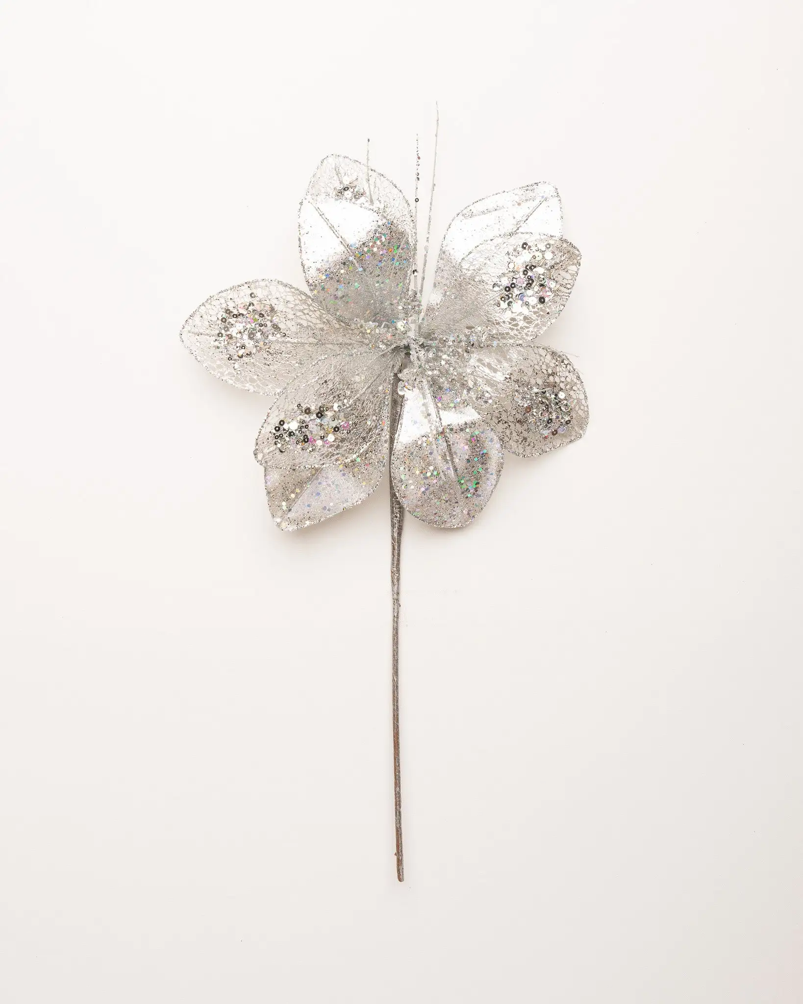 Classic and colorful, this beautiful poinsettia adds a warm and welcoming touch to your holiday decor. The simple yet soft petals accented with the beautiful jeweled core make this versatile piece perfect for decorating any Christmas tree, wreath, or garland.