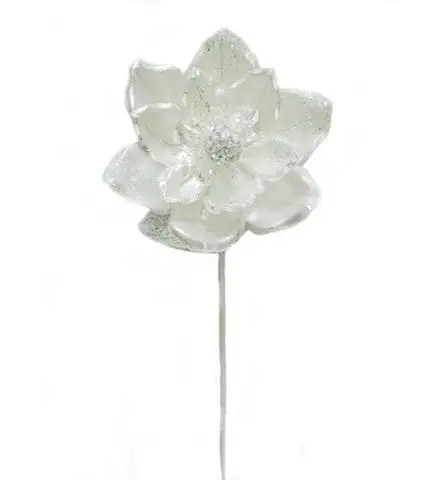 Add this fancy pearl white glitter magnolia to your holiday decor this season. It features sequined petals that shine effortlessly that all come together with a glittered center. The perfect elegant touch for any decor. Use this on your Christmas Tree, wreath, garland or centerpiece.