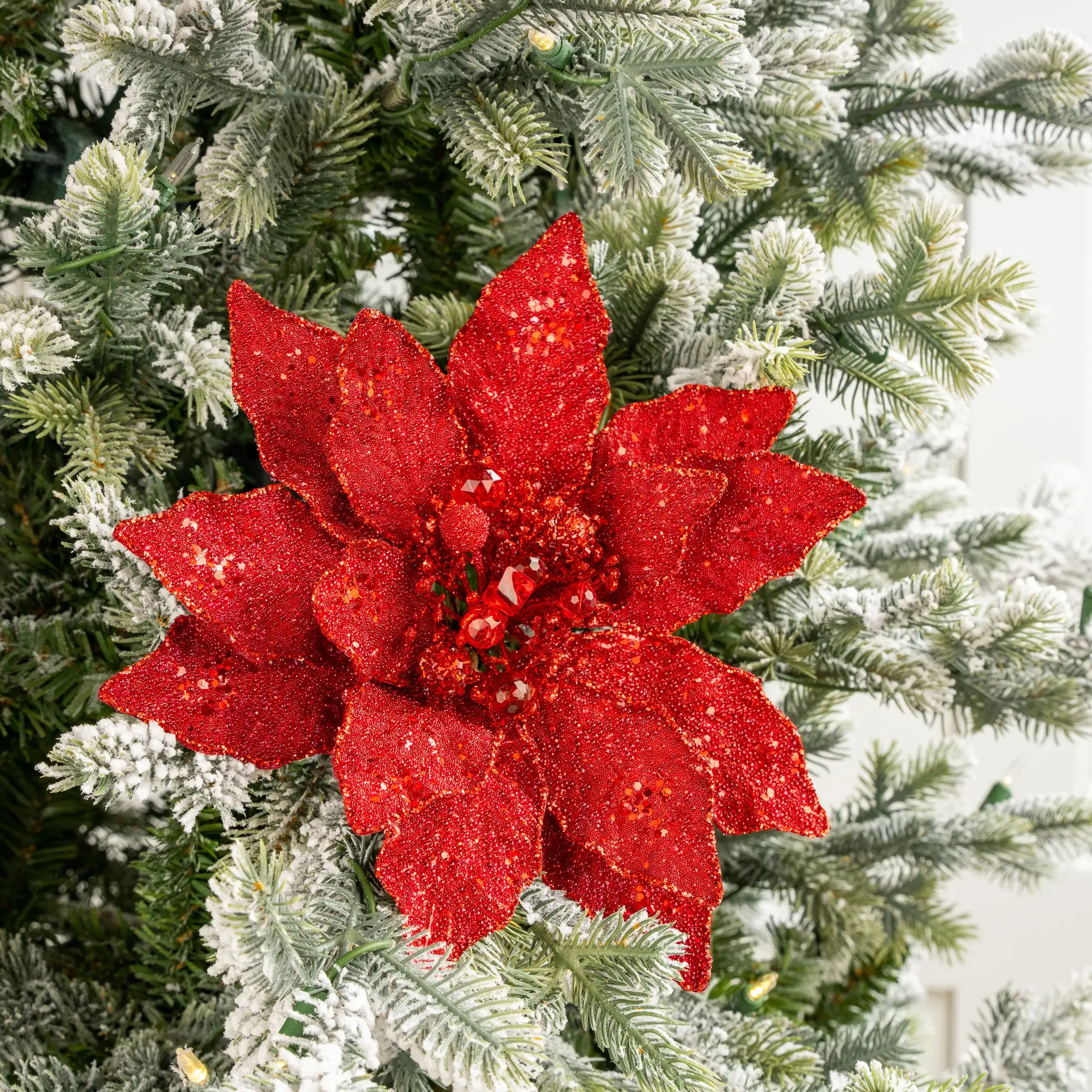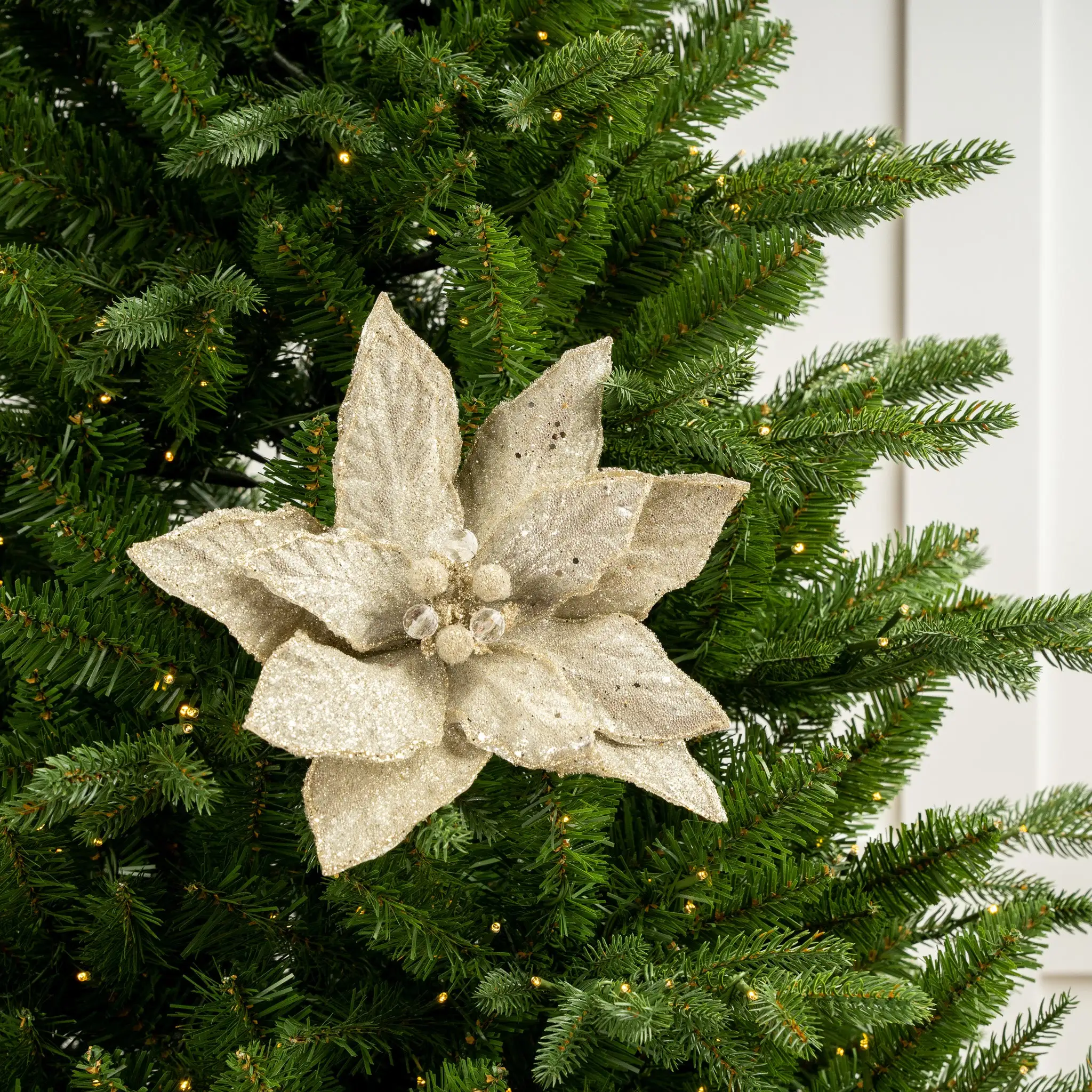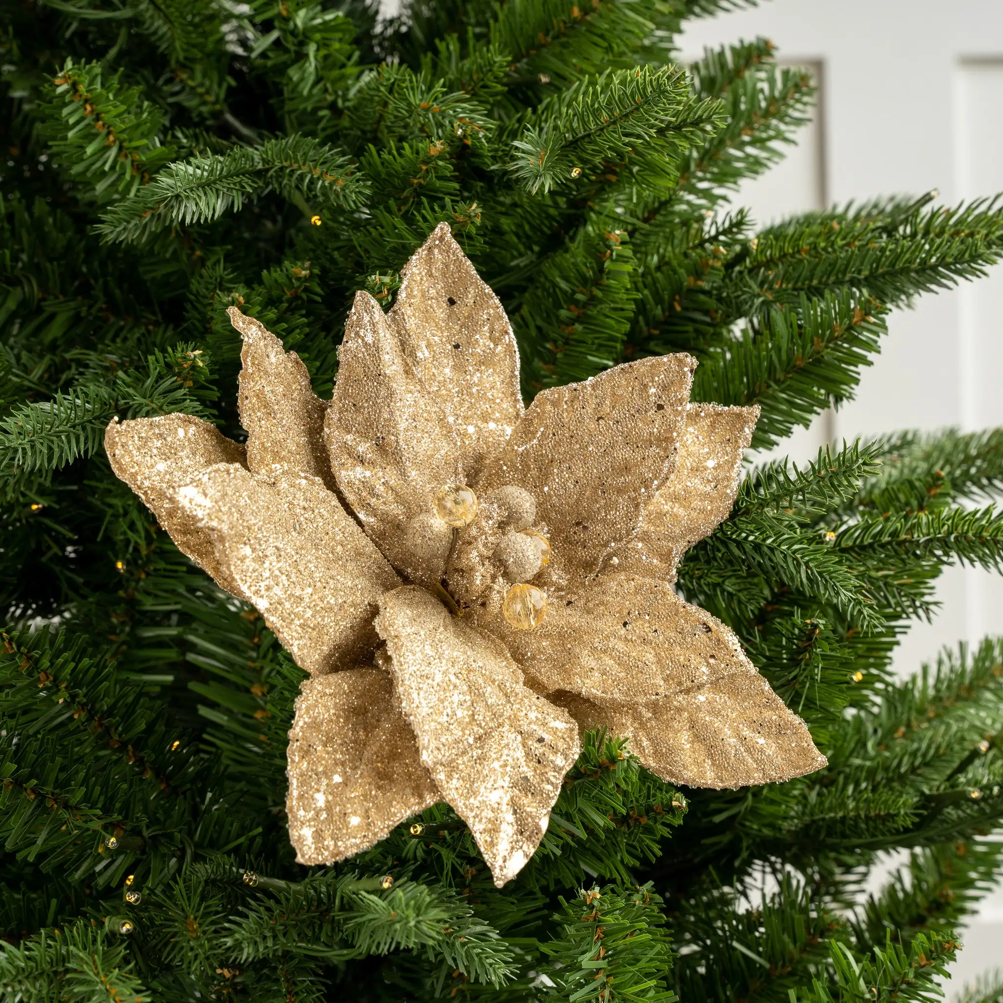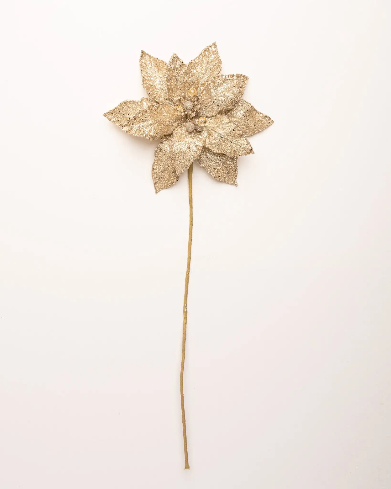 Create an upscale theme that captures the beauty of the season with our sequined poinsettia stem. The gorgeous, on-trend champagne tone has life-like texturing and alluring sequins and glitter detailing that won’t go unnoticed in any Christmas tree.