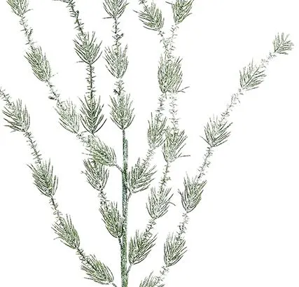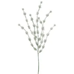 A sparkly, glitter covered pine spray. This fun spray will add touch of excitement to your green trees, wreaths, and garlands. A perfect match to styles that include brightly colored decorations.