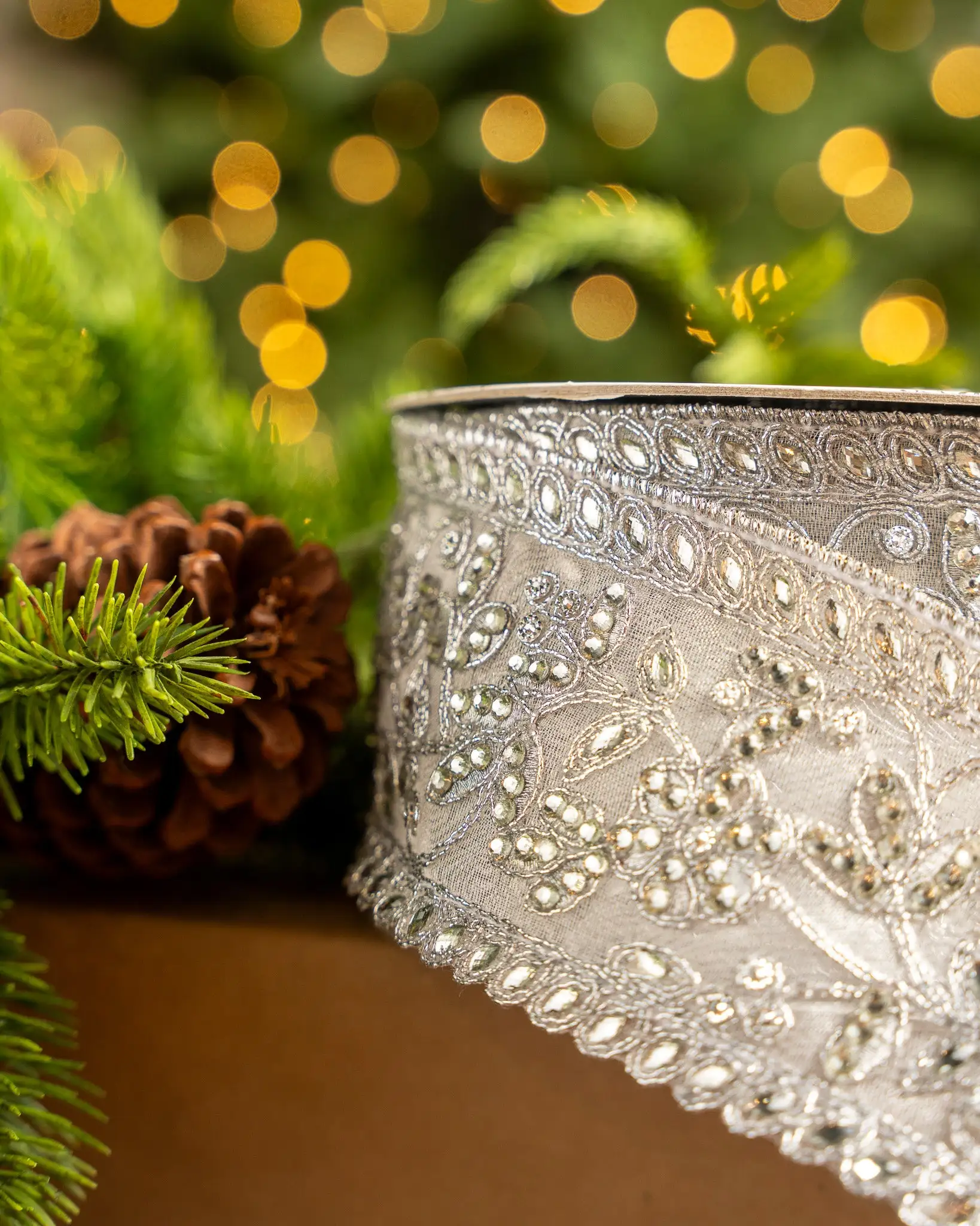 SKU: DGHLY 1695826909 Categories: Ribbons & Bows, Tree Decorations Tags: Collection:The Christmas Palace Collection, Color:Silver, Material:Lace, Size:10 Yard, Style:Ribbon, Width:3"