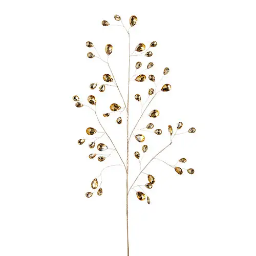 This gold glamorous jeweled spray have sparkling crystal tips and bejeweled iridescent amulets for leaves.
