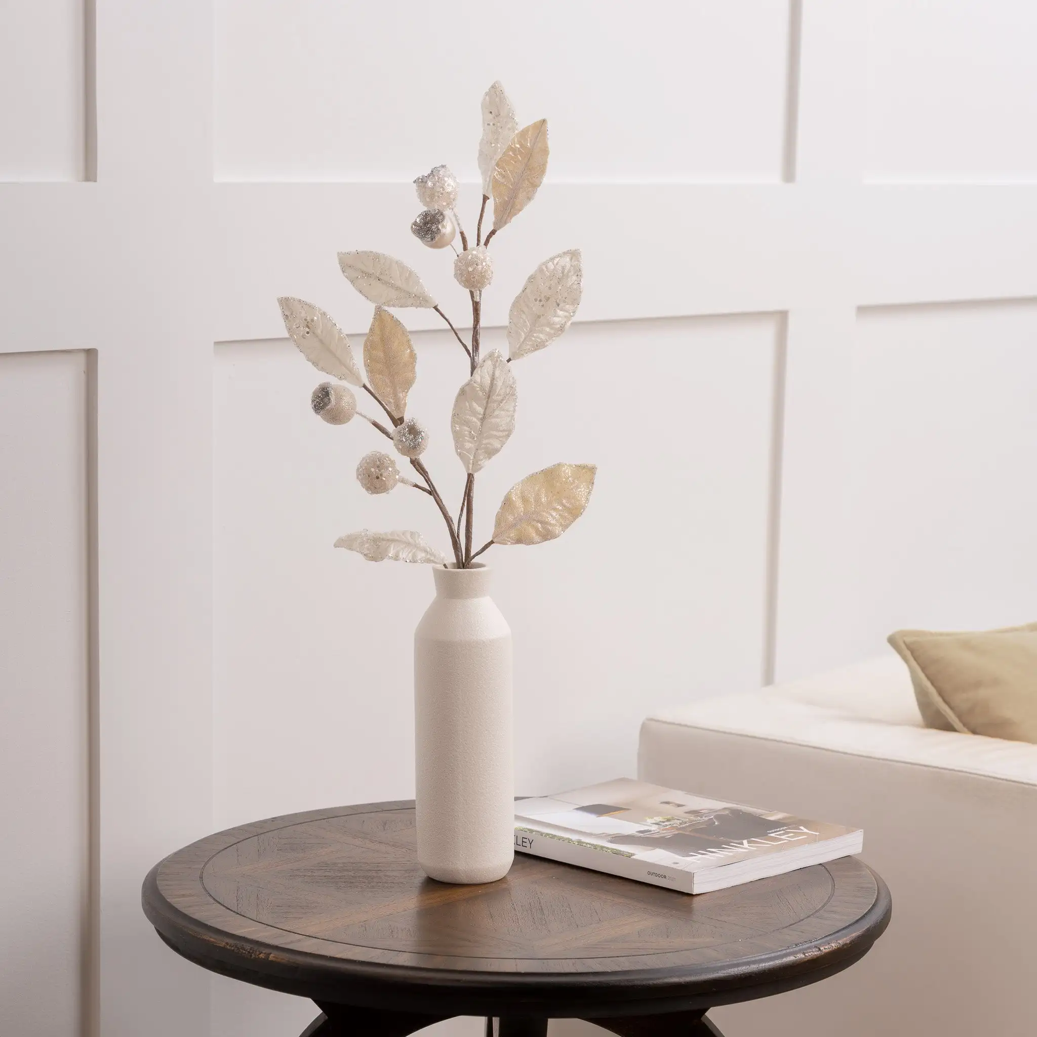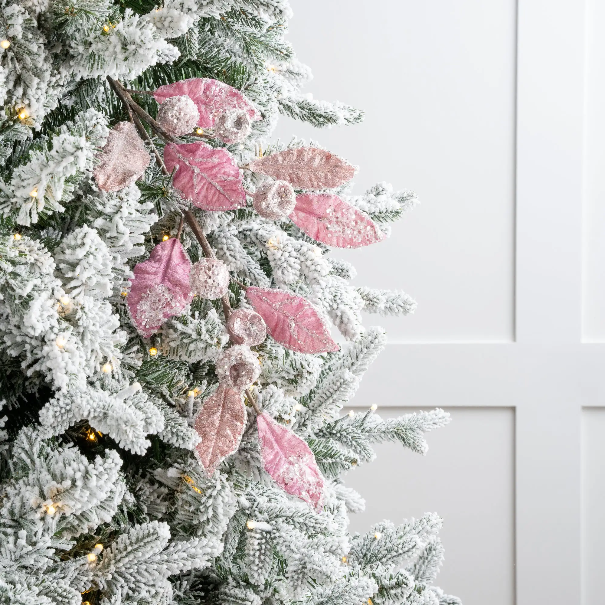 This gorgeous yet elegant mini pomegranate leaf branch is a must have this season. Add fullness and texture to your garlands, wreaths, or the body of your Christmas tree and combine with your traditional red, green, and gold ribbon and ornaments to complete the look.