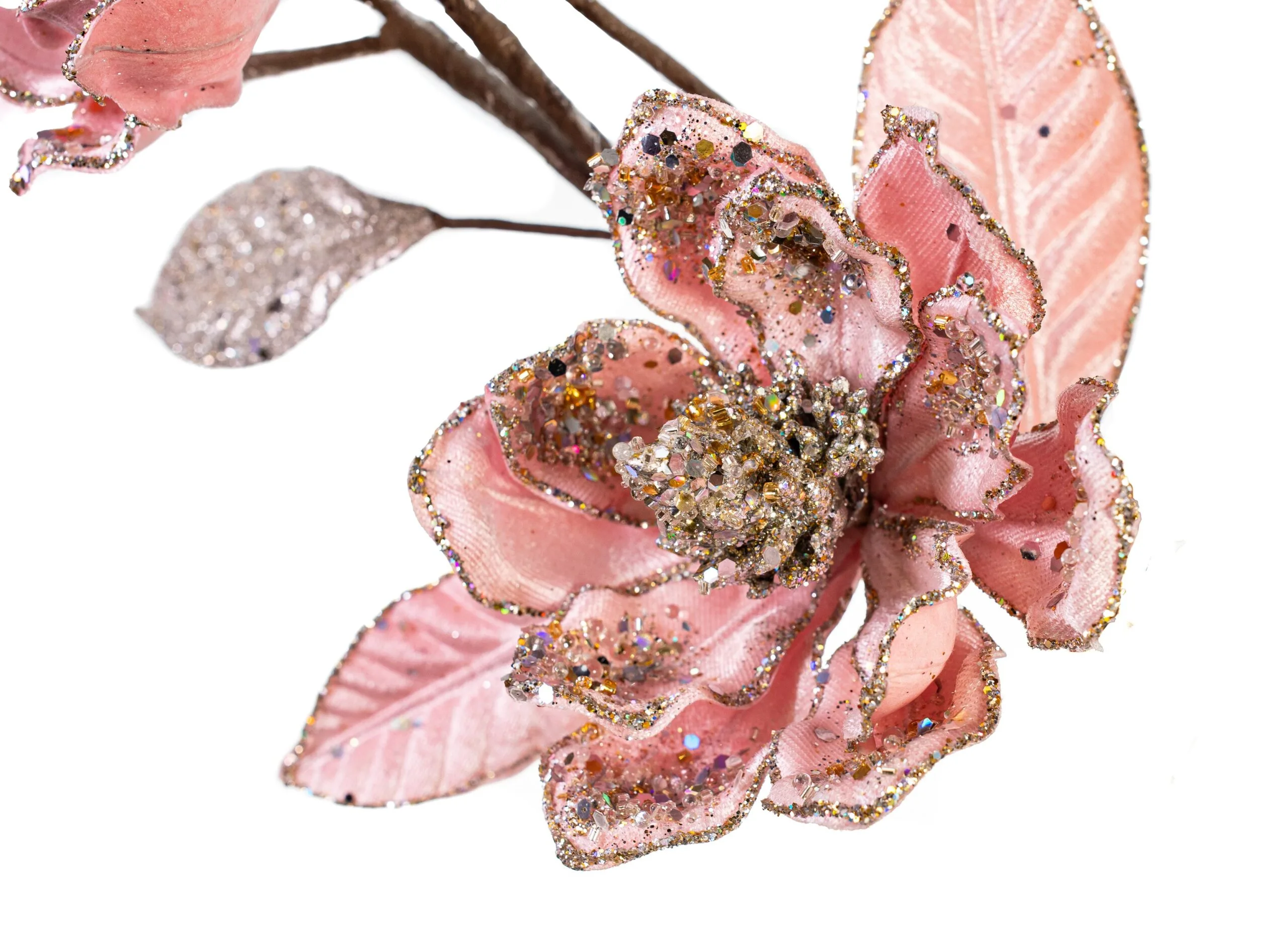 This eye-catching magnolia spray is a must have addition to your holiday decor. The attention and detail put into this spray will take your decorations to the next level.
