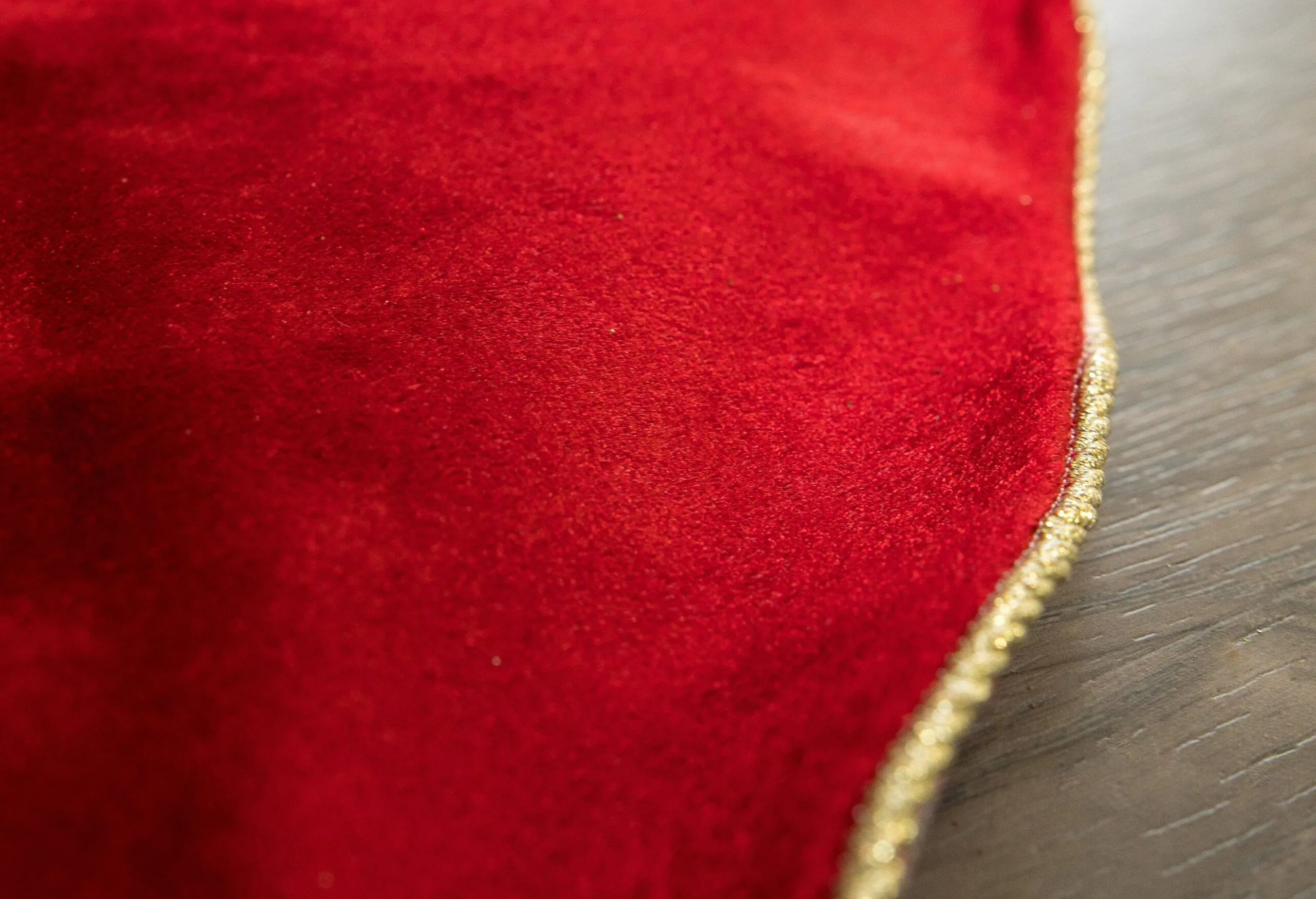Spruce up your Christmas tree this season with this beautiful skirt. The red velvet is the perfect complement of this tree skirt which will make your Christmas festivities pop! Imagine the delight on Christmas morning after Santa visits and piles the gifts on this skirt!