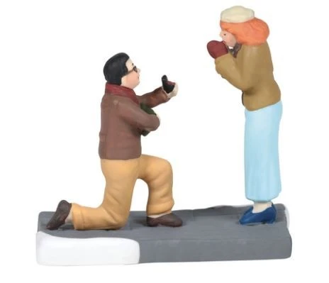 Every womans dreams come true with this delightful piece. It features a partner on one knee with a gorgeous ring in his hand. It is the dream of many girls hoping for a holiday engagement. Bring joyful love to your holiday decor this season.