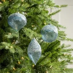 5″ Arctic Blue & Silver Glass Santa Ornament Set Of 2