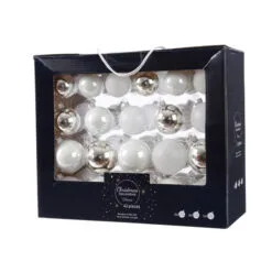 2-2.7″ White & Silver Assorted Glass Ornament Set Of 42 Pieces